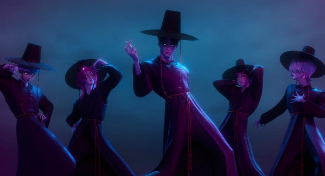В названии "Saja Boys" есть более глубокий смысл. Корейское слово "saja" может означать "лев", и мы видим, что их логотип и фирменный стиль содержат изображения львов. Однако в корейском фольклоре "чосон саджа" - это фигуры с косой, которые сопровождают души умерших в загробную жизнь. На типичных изображениях чосон саджа изображен в черном ханбоке и гат (широкополой шляпе), точно так же, как мальчики Саджа в их демоническом обличье.