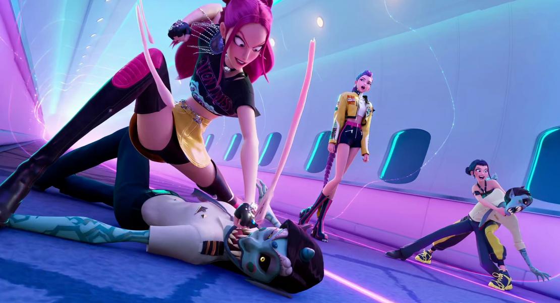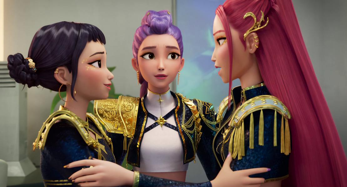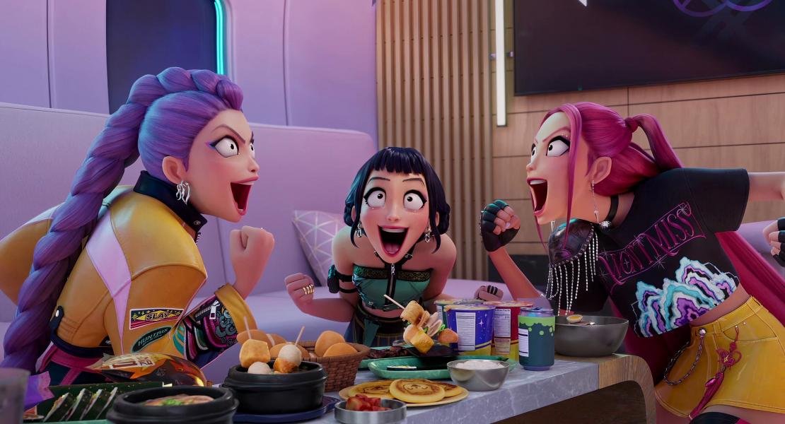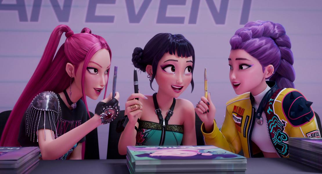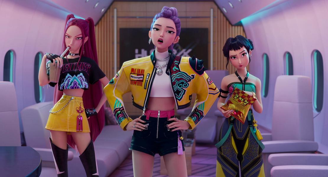 Когда Джину впервые сталкивается с Руми, саундтрек и визуальные эффекты "Love, Maybe" являются отсылкой к началу сериала "Деловое предложение" (2022). Главную роль в "Деловом предложении" исполнил Ан Хе Соп, который озвучивает Джину. В интервью Forbes режиссер Мэгги Кан призналась, что персонаж Джину был вдохновлен в основном актерами К-драмы. Она называет Ча Ын У и Нам Чжу Хека главными вдохновителями. Они хотели, чтобы у него был классический корейский образ, поэтому у него были темные волосы. Несмотря на то, что персонаж был создан до того, как Ан Хе Соп получил роль, Кан видит сходство со своим персонажем, делающим бизнес-предложение.